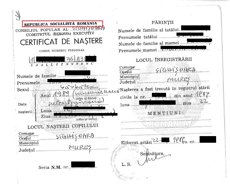 Rumunské rodné listy nemusí nutně vypadat nijak staře. Ve skutečnosti jich je mnoho vydáno nově, protože spousta lidí si vyměňuje své staré (viz obrázek vpravo), na kterých je ještě Socialistická republika Rumunska. Na nových, vydaných po roce '89, už tento údaj samozřejmě není. Ani v opačném případě nemusí váš rodný list vypadat staře; můžete si jej kdykoliv nechat vyměnit za nový, pokud je ten váš poškozený nebo jakkoliv ošoupaný.